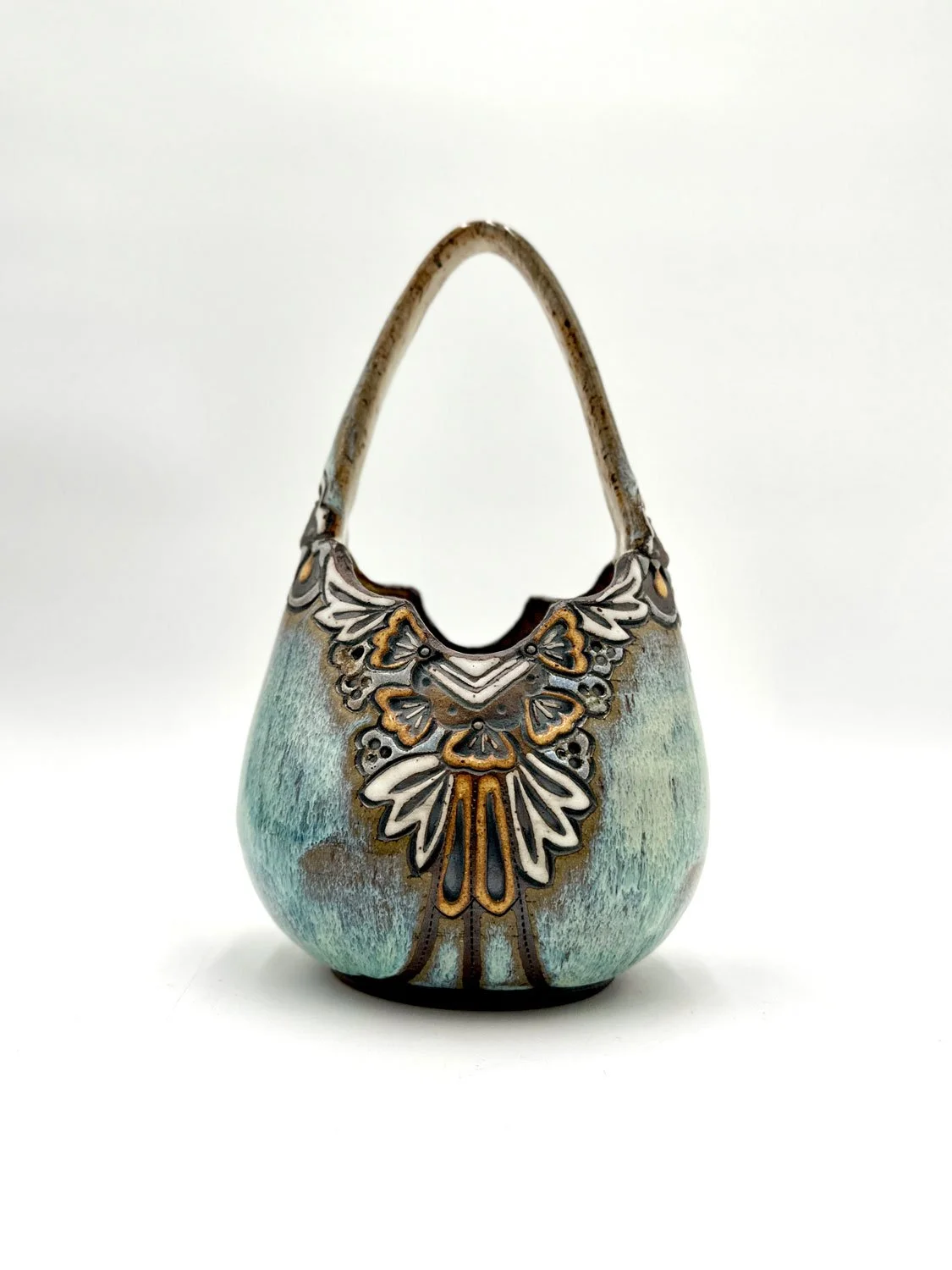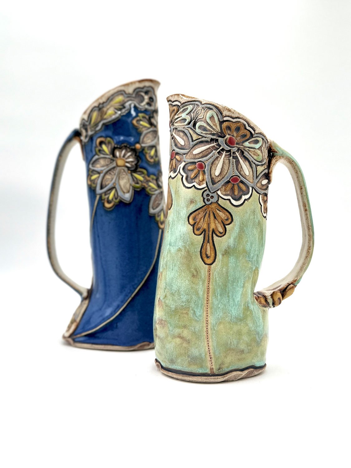 Roanoke-based artist and teacher, Ingrid Chase, creates pottery that honors the slow rhythms of making and the quiet beauty of the handmade. Working intuitively, she builds surfaces alive with layered patterns and textures, often developed through her hand-carved stamps and tools.